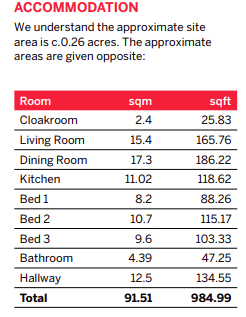 The subject property comprises a detached bungalow on a site of approximately 0.26 acres, comprising an entrance hall, living room with fireplace, kitchen, three bedrooms and a bathroom.