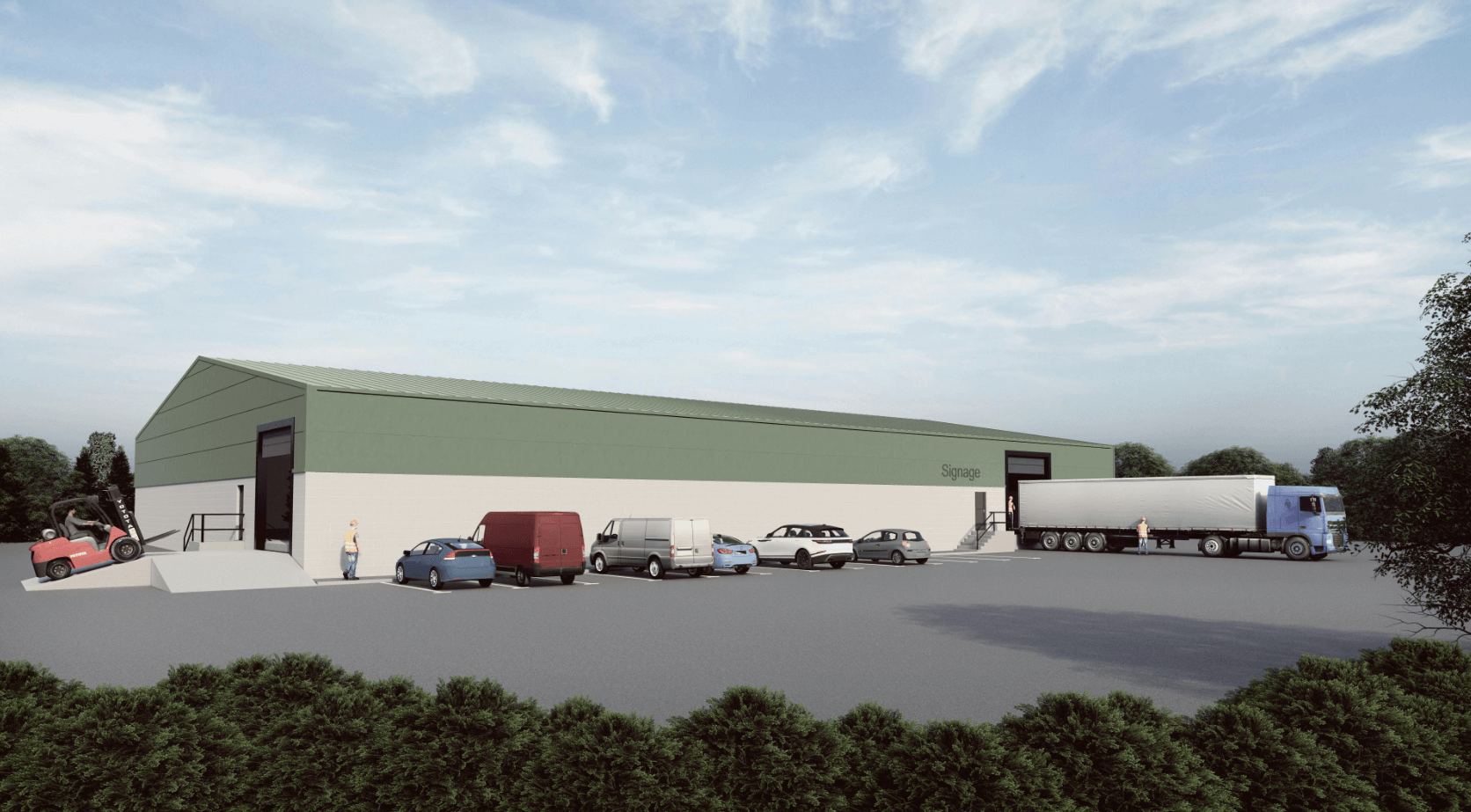 Concrete service yard and dedicated on site car parking