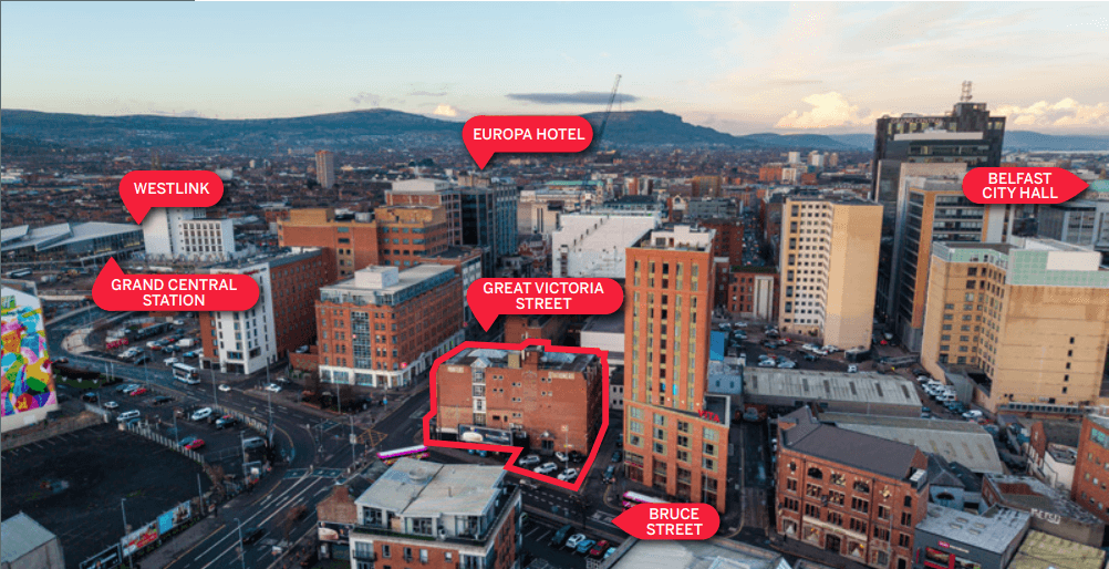 - Landmark city centre building on corner of Great Victoria Street and Bruce Street