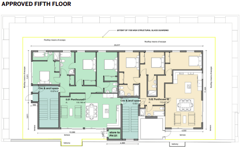 Part of the rooftop is occupied by a telecoms mast with a comms room.
