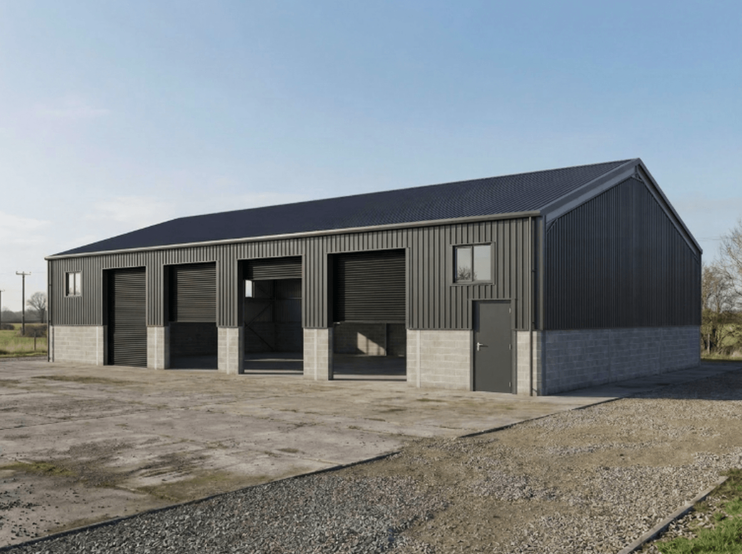 Loading access will be provided via four electrically operated roller shutter doors, each offering a clear height of approximately 5 metres. The building will also benefit from the installation of a crane rail designed to accommodate a 10‑tonne gantry crane, making the unit particularly well suited to engineering, fabrication or heavy industrial occupiers.
