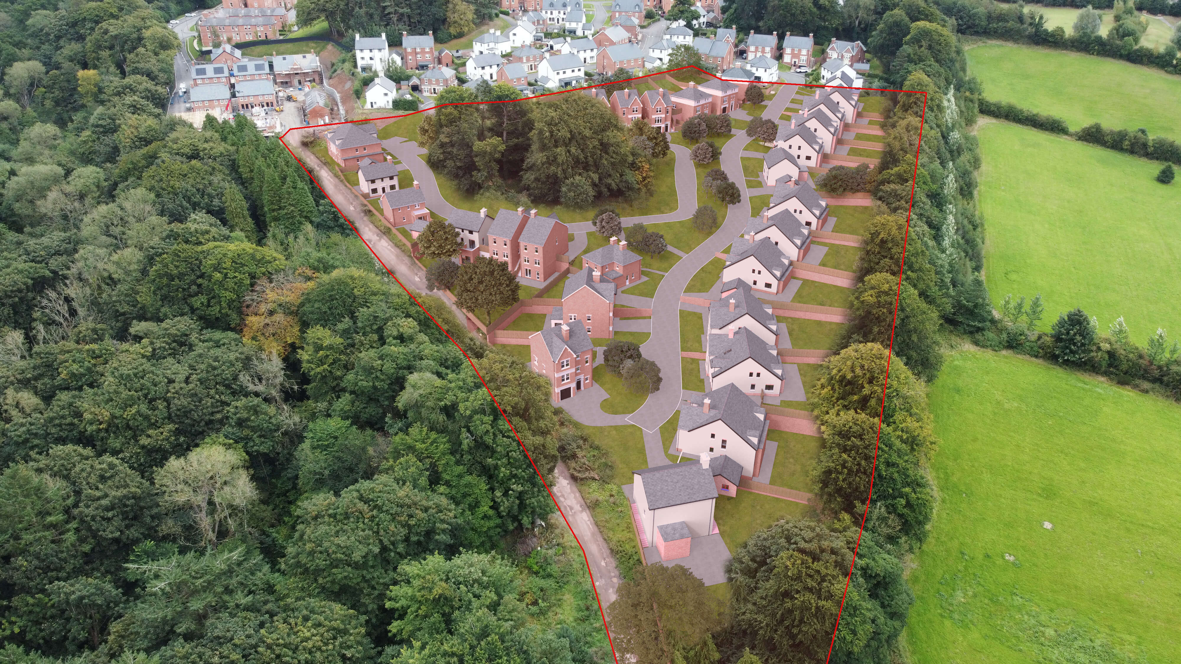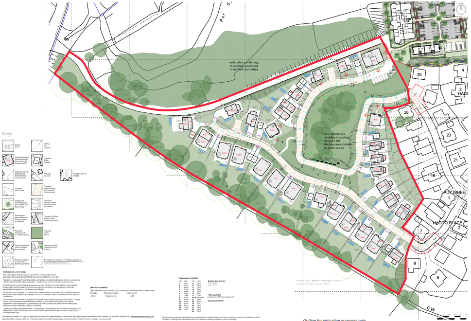 Full Planning approval for the construction of 33 high specification, energy efficient dwellings (including 5 no. affordable - Ref LA04/2020/2607/F – approved 20 December 2024)