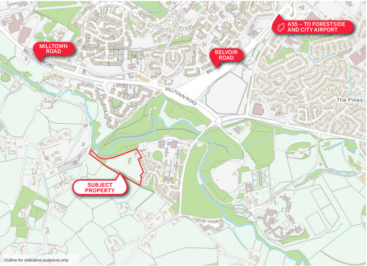 The subject lands are accessed off Hospital Road, and lie to the west of earlier phases of the wider Belvoir Park development. The scheme has been well received by the market with strong sales due in large part to its combination of modern living with adjacent open space and woodland.