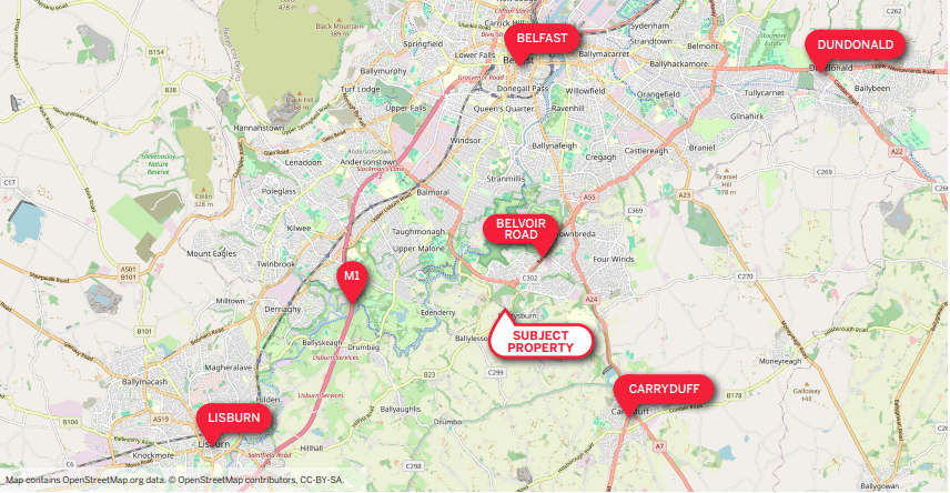 Located in South Belfast, Belvoir Park enjoys a rural backdrop with Shaw’s Bridge and Lagan Valley Regional Park located nearby. In the vicinity are a range of amenities and facilities, accessed via the A55 outer ring road, including Forestside Shopping Centre, Belvoir and Malone Golf clubs, the city centre and George Best City airport.