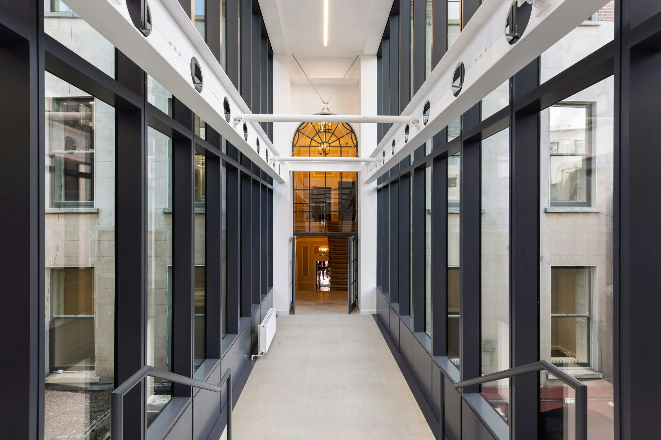 Originally built in 1779, 16 St. Stephen’s Green is now a cutting-edge, ultra-contemporary building that retains its rich and sophisticated heritage. With an entrance on St. Stephen’s Green, this expertly restored four-storey Georgian structure oozes prestige. Walk through an expertly designed glass bridge on one of four levels to the stunning new development. This breath-taking space is seven storeys of exceptional modern architecture.