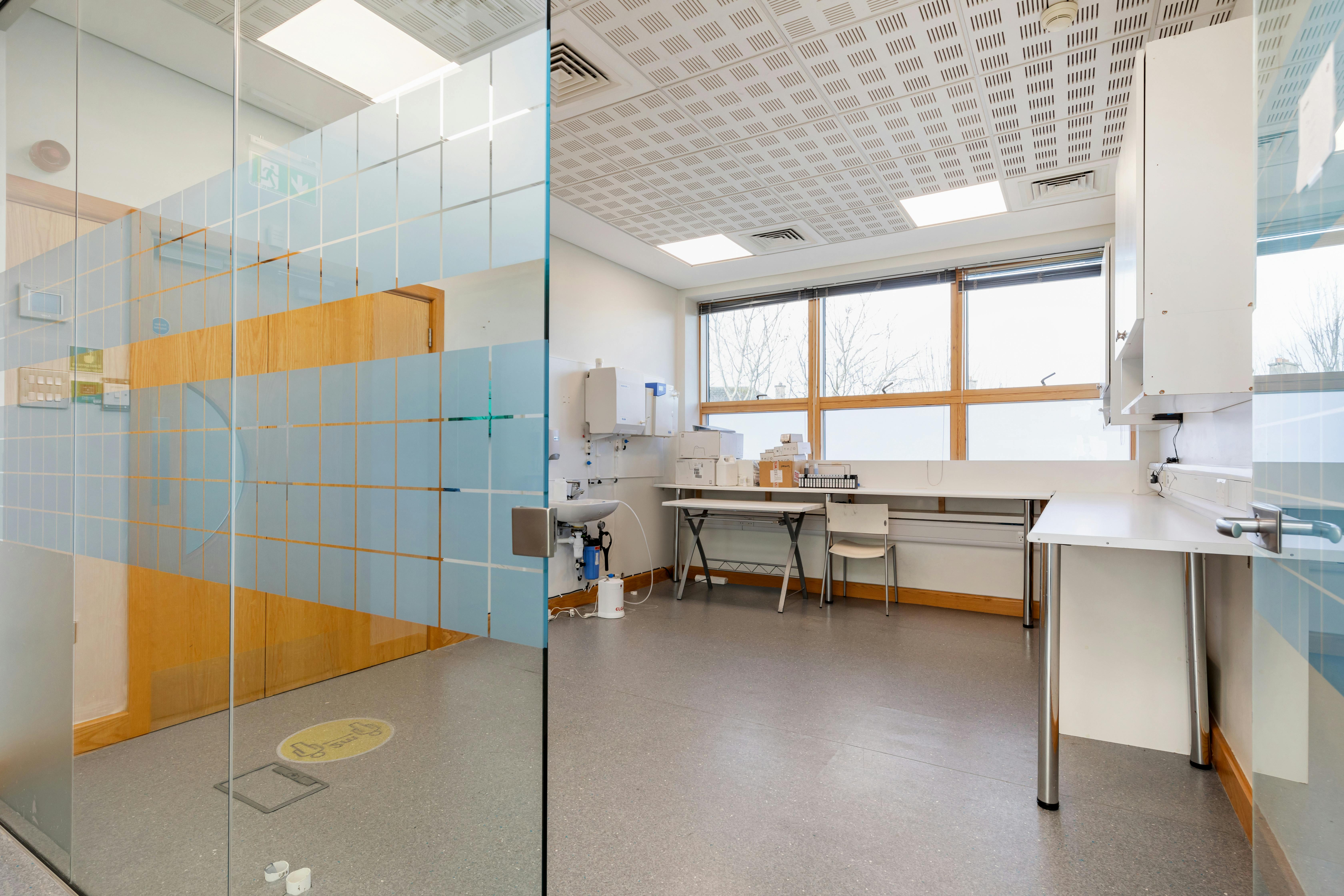 The first floor of Ballintaggart House offers 559 sq.m (6,017 sq.ft) of flexible office / medical accommodation, combining open-plan space with meeting rooms and executive offices. Access is via a high-quality reception at ground level with a passenger lift. The property includes 10 dedicated on-site