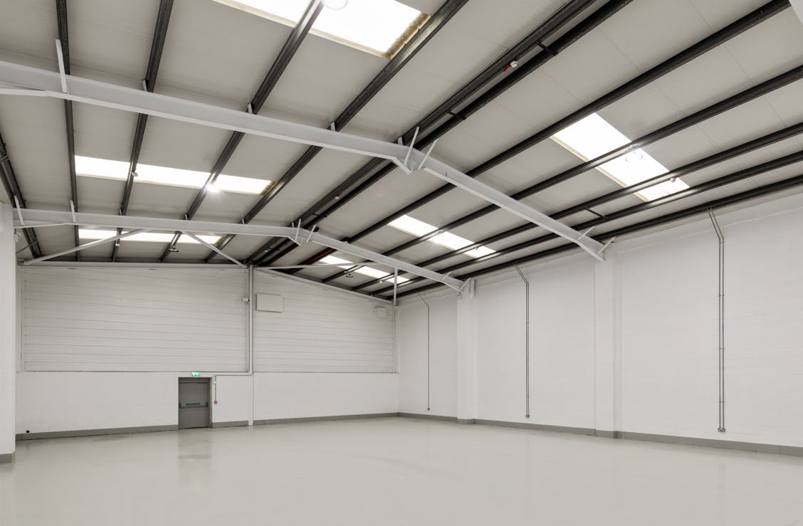 - Steel portal frame construction with a clear internal height of approx. 6m