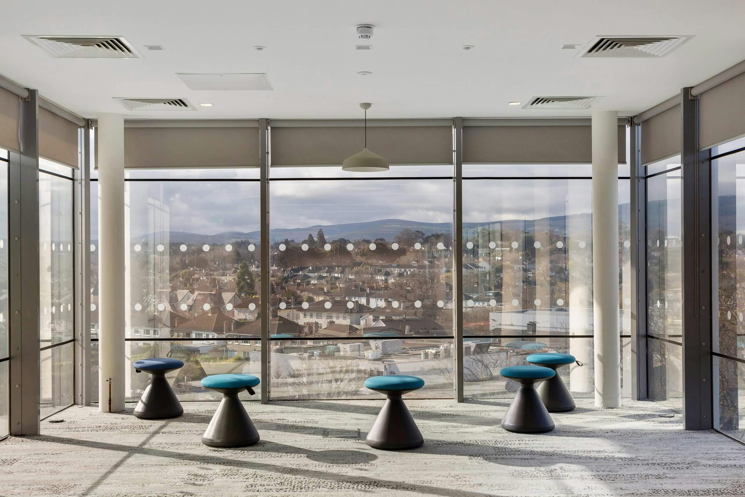 - Mix of suspended grid ceilings and tile ceiling systems